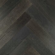 A soft black herringbone floor with a gently brushed surface for a slightly vintage look. This engineered oak parquet has a matt finish. The brushed timber gives it a pleasing tactile appearance. Available in herringbone and chevron parquet as well as planks. Seen here without a bevel but equally available with bevels.