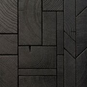 The Forêt Collection contains six unique end-grain patterns, empowering designers and architects to personalise their flooring projects with poise. Opt for a singular design or combine multiple patterns to create a unique statement floor. The tongue-and-groove engineered boards, available in long lengths, ensure efficient installation. The deep, dark tones of Forêt Black are achieved through a burning process similar to the Japanese “shou-sugi-ban” technique. This also imparts a rustic character to the surface by removing the softer wood layers. Invisible lacquer seals this hardened surface and contributes to its strong resistance to wear and tear.